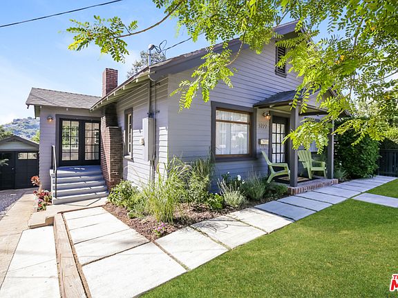 Historic Craftsman style home with separate guest unit and a beautiful view of the hills. Lot's of charm and character throughout this light and airy floor plan featuring 3 bedrooms and 3 bathrooms in the main house. Hardwood floors, new kitchen with stainless steel appliances, outdoor deck and breakfast area opens to the dining and living rooms with a decorative brick fireplace. Master bedroom also opens to the deck and has a private attached bathroom with high ceilings and large walk in glass shower. Lower level guest unit with a separate entry includes a large living area, private 4th bedroom and half bath. This is a great option for an office or home studio. All bathrooms have been remodeled. Gated front and driveway, indoor laundry area and central air conditioning. Large back yard and additional basement for extra storage space.