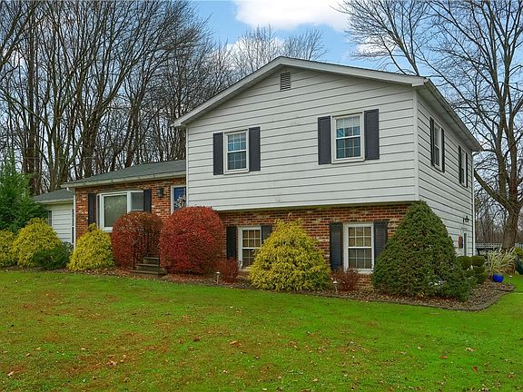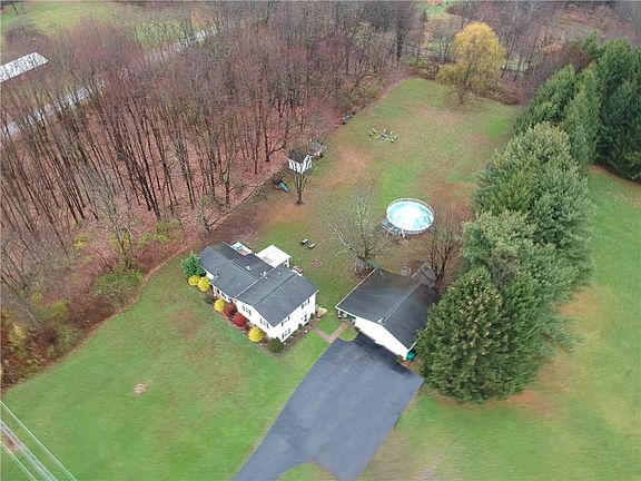 Situated on almost 2 acres of serene land is this charming multi-level home with modern updates. Minutes from I-79 and Route 19. Enter the spacious and bright family room with modern flooring and a brick fireplace adding warmth on a chilly evening. Ascend to the updated open concept chef’s kitchen with stylish cabinetry featuring showcase cabinets, endless counter space and a complementary backsplash. A center island provides storage and is the perfect place for a quick meal. Enjoy everyday meals in the adjacent dining area. A sliding door provides access to the sunroom, and floods this space with natural light. After a long day, retreat to the expansive primary bedroom on this level. The lower level features a versatile finished space and laundry. Outdoors enjoy the porch of the 2 car, finished and heated detached garage, while family and friends cool off in the pool. Two storage sheds provide adequate room for all your storage needs. Plenty of space in and out for all!