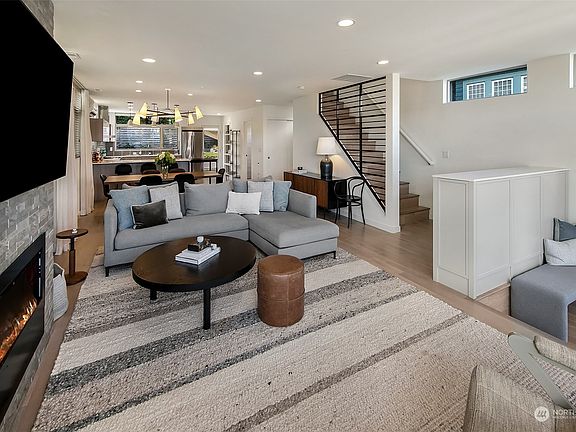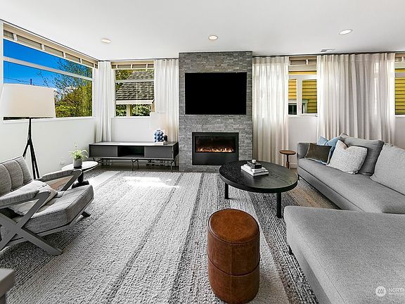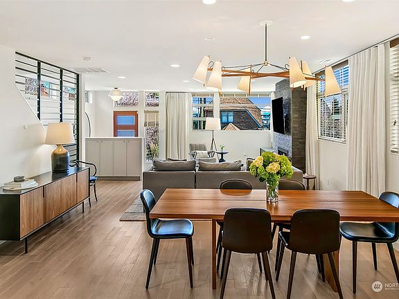 Proud to present a modern 2015 luxury contemporary home perched up off the street on a large lot w/ spectacular views of morning sunrises, city skyline, Cascade Mtns & territorial views. Real hardwood floors guide you through grand living spaces filled w/ designer details, formal dining, massive chef's kitchen looking out to eco-yard fully-fenced w/ beautiful gardens & patio. Upstairs find 3 equally large bedrooms, spacious bath, laundry & den/office all on 1 level. Dreamy primary suite top floor w/ luxurious 5-piece spa bath & stunning views w/ roof-top deck + wet bar. Parking w/ EV charger! Located in the heart of desirable Wallingford on a quiet street w/ easy access to UW, parks, Burke Gilman trail, SLU & Downtown. This one is special!