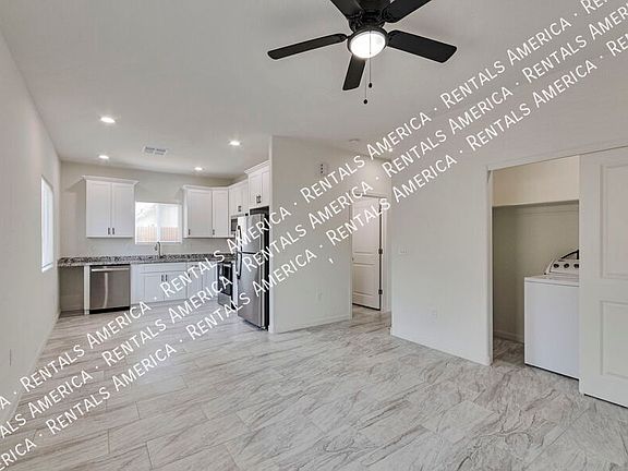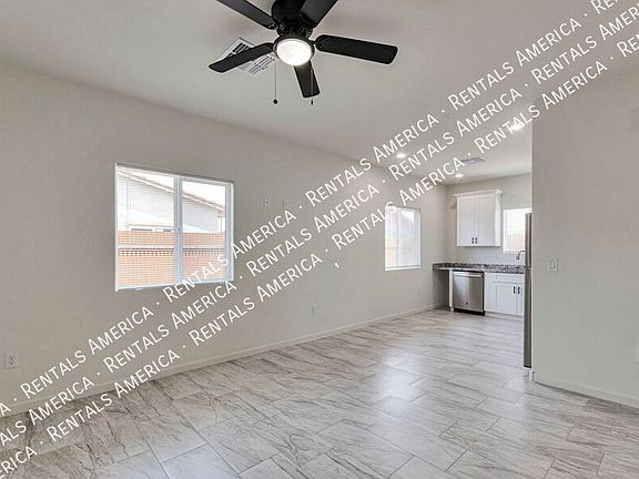 This home features a modern kitchen outfitted with sleek appliances and clean finishes in an open concept that combines the living and dining spaces. There are many large windows offering tons of natural light that brighten every room and create a light, open feel. You will find easy-to-maintain tile flooring throughout -no carpet!