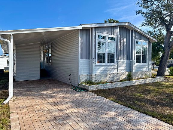Spacious and beautifully maintained, this 2019 luxury-style Jacobsen home welcomes you with high ceilings and an open, airy feel from the moment you step inside. Gently lived in by a single owner, it offers three generous bedrooms and two bathrooms, all designed with an open-concept layout that fills the home with natural light. A large side deck provides the perfect place to relax and enjoy the Florida weather. The expansive kitchen and dining area are ideal for entertaining, featuring a matching GE appliance package that complements the home's modern aesthetic. Additional upgrades include tile flooring throughout and carpet in the bedrooms, a 2023 HVAC system, and a paver driveway that enhances the home's curb appeal. The main bedroom is spacious enough to comfortably accommodate a king-size set and includes a large closet and private en-suite bathroom for added convenience. This home sits on a premium lot with additional room in the back should you wish to add a patio. Located in Winward Lakes-an exclusive, gated, pet-friendly 55+ community in South Tampa, rated by Forbes as Florida's number one place to live-residents enjoy amenities such as a heated pool and a well-equipped fitness center. The community is close to shops, restaurants, medical services, and the Crosstown Expressway for easy travel. This home is on leased land with a monthly lot rent of $839. Winward Lakes is a beautiful, affordable, and highly desirable South Tampa community-come see for yourself everything it has to offer! While all information is considered reliable, we encourage prospective buyers to conduct their own personal inspections for a comprehensive understanding of the property's condition and measurements. Please note that American Mobile Home Sales of Tampa Bay Inc. cannot guarantee the accuracy of this information. As a buyer, you will be responsible for all closing costs, sales tax, and title transfer fees associated with the purchase. The buyer assumes full responsibility for obtaining all current rates for lot rent, fees, and any pass-on costs, as well as to familiarize yourself with the lease agreement and community regulations. For these details, please reach out to the community or park manager directly. American Mobile Home Sales of Tampa Bay Inc. is not responsible for quoting said fees or policies.