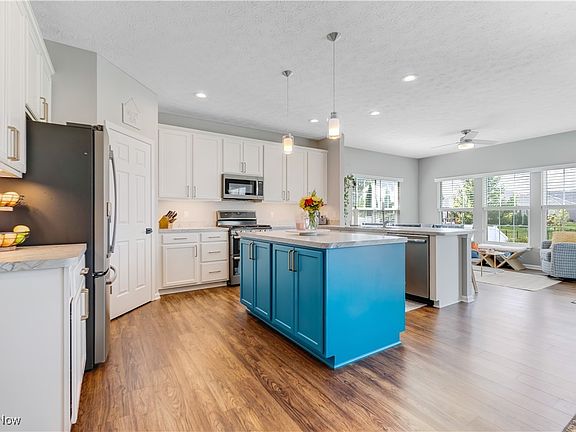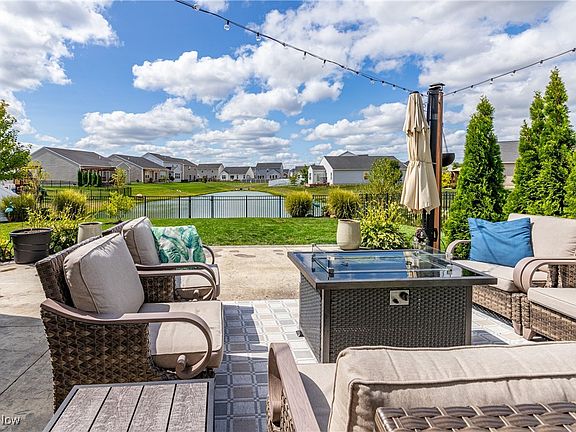 You won't want to miss this Bright and Beautiful Meadow Lakes Colonial home with an Expanded Lot and Pond View. Entering the house you will be greeted by an inviting foyer and open floor plan. The Kitchen features Oak Cabinetry, Custom Pantry, large center island, Bright Morning Room with water views, breakfast bar and includes all appliances. The first floor boasts wide open spaces, fireplace, extra can lighting, upgraded flooring and a recently remodeled half bath. A secondary foyer greets you from the garage entrance with plenty of storage space to kick off your shoes and jackets and includes a convenient first floor laundry. As you walk upstairs you will be greeted by a spacious landing that leads to the 4 well sized bedrooms and 2 full baths. Primary Suite includes two walk in closets and a full bath. Home's lower level offers ample storage space and awaits your finishing touches. The fully fenced backyard is an entertainers dream with low maintenance landscaping, full concrete patio and gorgeous pond views. The yard includes a full irrigation system ensuring you'll have one of the best lawns on the block year after year. Super clean, attached, two car garage has extra Shelving/Cabinetry, finished floor and Heating for year round use. This home also includes many smart home lighting features and custom installed ceiling speakers. Conveniently located near Sandy Ridge Reservation trails and park giving you the retreat of nature within a short distance from home.