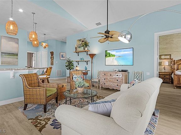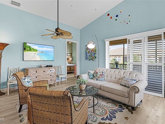 Exceptionally beautiful turnkey condo with a coastal vibe. High ceilings, bright, clean, tastefully furnished, 3rd/top floor (has elevator) and overlooks the pool area. Listen to the sound of swaying palms that are right outside your screened lanai/balcony. Depending on duration of stay, rate may be negotiable, please inquire directly. Perfect for traveling doctors or nurses, or temporary job transferees, or if you want to supervise your new construction home but desire to have the comforts of home. This condo offers two bedrooms that are totally on opposite sides of the condo and an office w a murphy bed (can be a third bedroom). The primary suite is beautiful and the primary bathroom is as well. There is a seperate space for laundry off the kitchen. The gorgeous pool area is just steps from the screened in patio away. You have your own garage as well and guest parking too. Located in beautiful SW Cape Coral, with shopping, restaurants and entertainment just minutes away. Approval period through HOA takes up to 20 days. No pets. Maximum occupancy: 3 Close to Gulf Elementary/Middle and Ida Baker High School. Tenants may not have pets, per HOA.