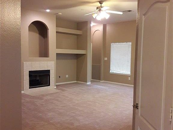 Huge living/kitchen/dining area! Open concept! Beautiful built-ins and fireplace in the living room. Kitchen has a large island and walk-in pantry. Huge master bathroom with two separate vanities and extra spacious walk-in closet. One of the secondary bedrooms has double doors and would work wonderfully for a home office. Covered back patio. Access to neighborhood park/lake/playground. Minor make-ready and cleaning in progress.