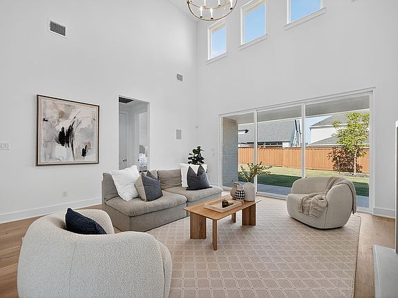 Every detail of this 4-bedroom, 4-bath Frisco home has been curated for style and sophistication. Natural light pours through open spaces, illuminating wide-plank White Oak floors that sweep across both levels and a dramatic spiral staircase. The chef’s kitchen is a showstopper — ceiling-high cabinetry, a marble backsplash and countertops protected by Stoneguard, and a luxury KitchenAid appliance package complete with a 6-burner range and double oven. The cast-stone fireplace and designer lighting create a warm, inviting atmosphere perfect for entertaining or cozy nights in.