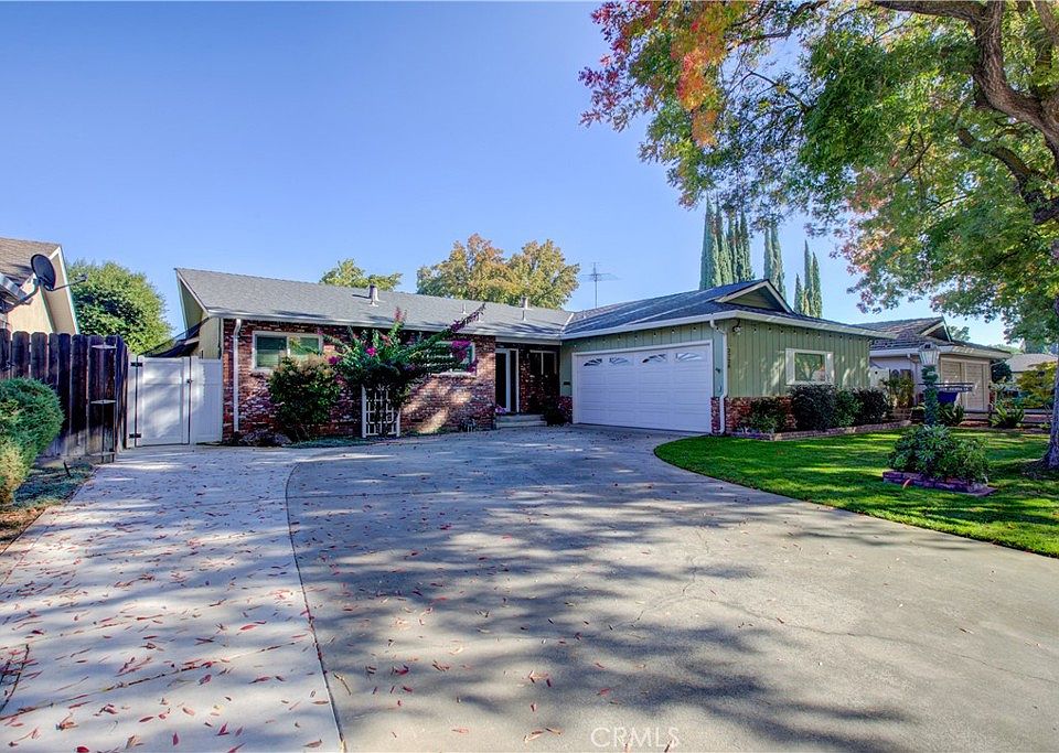 Charming 3-bedroom, 2-bath home perfectly situated in North Modesto's most sought-after areas. This single-story residence offers great curb appeal with a combination of classic brick facia, a front porch, and a custom front door that sets a warm and inviting tone. Step inside to a spacious family room that flows seamlessly into the open dining area and kitchen, perfect for gatherings and everyday living. The kitchen features granite countertops, stainless steel appliances, double sinks, and a sliding patio door leading to the backyard for easy indoor-outdoor enjoyment. Recent upgrades include a new composition roof, dual-pane windows, new HVAC system (2024), new water heater (2023), and a whole-house fan for year-round comfort and energy efficiency. The attached garage provides convenience and extra storage space, while the neatly landscaped front yard and mature tree enhance the home’s charm. Situated in a peaceful, established neighborhood, this home offers easy access to shopping, dining, parks, and top-rated schools—making it the perfect choice for comfort, convenience, and lasting value. Don’t miss your chance to own this beautifully maintained Modesto gem!