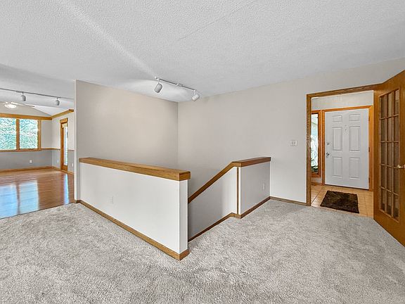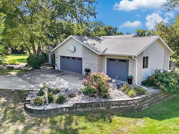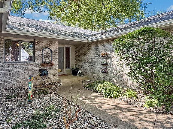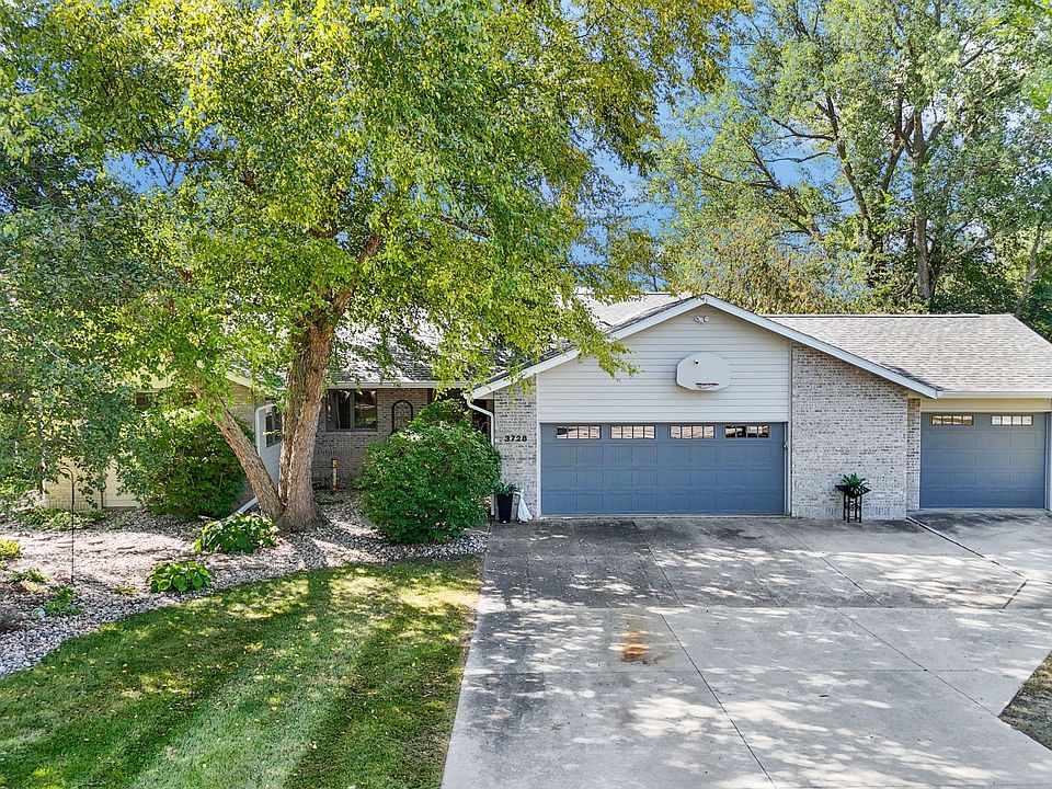 Fantastic 4-bed, 3-bath walkout ranch on a quiet cul-de-sac in Ames. The home sits on a .6-acre lot with mature trees and a peaceful view of a neighboring pond. The HOA covers garbage, water, sewer, road maintenance, and snow removal. The exterior features brick and cedar siding with welcoming curb appeal. Inside, a tiled foyer opens to a spacious living room with a fireplace and windows that capture natural light. The living room connects to the dining area, sunroom, and kitchen. The dining space offers deck access for outdoor grilling and relaxing. The sunroom, set behind French doors, provides scenic views from three sides. The kitchen includes granite counters, a tiled backsplash, pantry, peninsula seating, and stainless steel appliances. A laundry/mud room is just off the kitchen and leads to the 3-car heated garage. The main level features a primary suite with a walk-in closet and en-suite bath with dual sinks, granite vanity, tiled shower, heated floor, and private deck. Two additional bedrooms and a second full bath complete the main floor. The walkout lower level includes a large family room, a bedroom, a full bath, and abundant storage space. Updates include bathroom remodels, laminate basement flooring, and newer mechanicals, roof, gutters, and garage doors. The home also features a whole-house water filtration system and thoughtful landscaping. Conveniently located near recreation, shops, and local amenities.