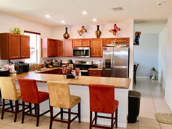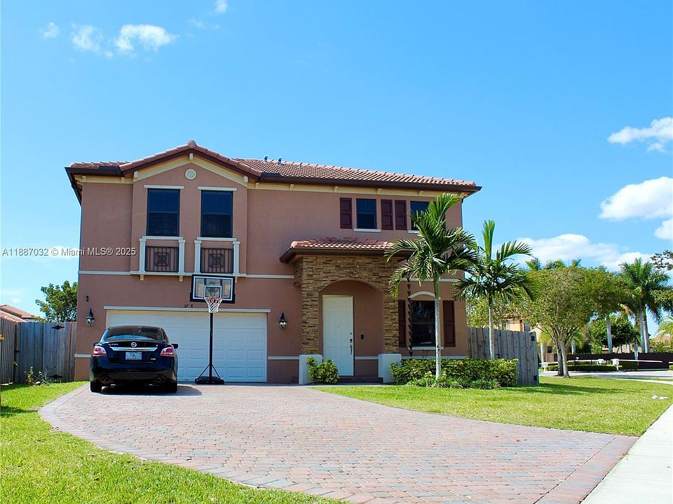 Great 4 bed 2 1/2 bath single two story home, 2675sqft under A/C , Master Bedroom with vaulted ceilings and master bathroom with double vanity, spacious kitchen with granite countertops, stainless steel appliances, open to a big family room for amazing entertainment area that communicates directly to the patio with part concrete and grass, privilege location in the community as it stands alone. This community is on the most recent developed area of the city, quiet & very close to all important features of Homestead, as it is close to the Miami Homestead Speedway, Air force Base, and the most recently built Baptist Hospital in Miami Dade.
