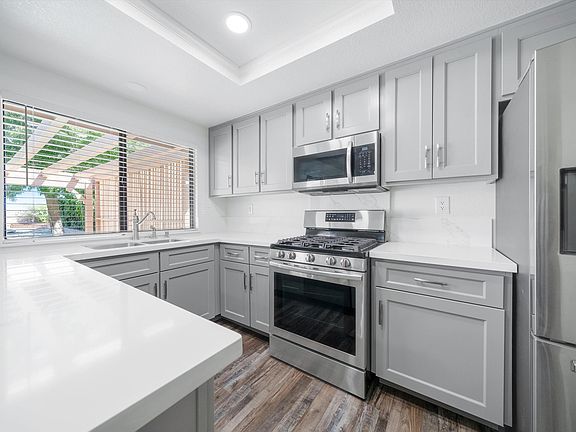 Updated Single Story Pool Home on Large Lot is an Entertainers Dream. Spacious with Vaulted Ceilings and 4 Bedrooms. Remodeled Chefs Kitchen Features Quartz Counters, New Cabinets, Stainless Appliances, LED Lighting, Oversize Dining Area and Opens to Large Private Patio Area. All New Luxury Laminate Flooring & Base Molding Throughout Common Areas / Bathrooms with Carpet in Rooms. Extra Deep Two-Car Garage with Storage and Built-In Air Conditioner. New Roof was Installed in 2022 and all the Exterior Trim is Freshly Painted. Oversized Backyard has Shade Trees & Hedges for Extra Privacy and Features a Remodeled Like-New Pool with All-New Plaster, Pool Pump and Filter. Perfect for Entertaining and Cooling Off on Hot Days. Side of House is Paved with Double Gates and Room for Small Trailer / Vehicle. A Home this Nice with a Built-In Pool at the Price is Hard to Find. You Do not want to Miss out on this Move-In Ready Home.