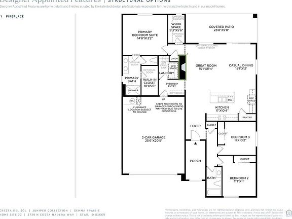 Immaculate single-level home nestled in a quiet neighborhood! The inviting living room has a gas fireplace w/tile surround, beautiful flooring throughout, & plenty of natural light flowing in. The open kitchen features a large island w/breakfast bar, quartz countertops, stainless-steel appliances, & pantry. The main-level master suite offers dual-vanity sinks, tiled shower, & large walk-in closet. Private backyard w/covered patio that is perfect for entertaining, laundry room w/sink, & so much more! The Cresta Del Sol community offers a community pool and pool house, walking paths, pickleball court, and park/recreation area.