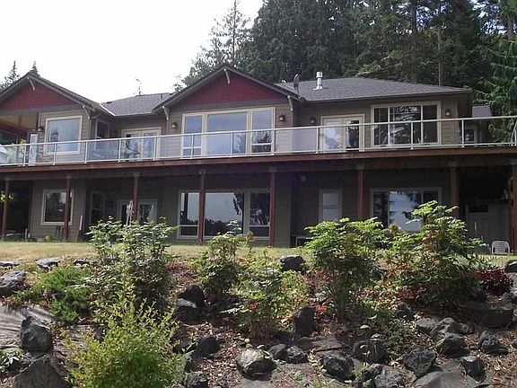 Waterfront living! Beautiful custom home built for maximizing water views and entertaining. Home features open concept with large windows, hardwood floors, a wonderful kitchen with granite counters, large island, and pantry. Master suite is on main level and has amazing views, deck access, fantastic bath with walk in or roll in shower and easy utility room access. Home has radiant floor heating system and cozy propane fireplace in living room.