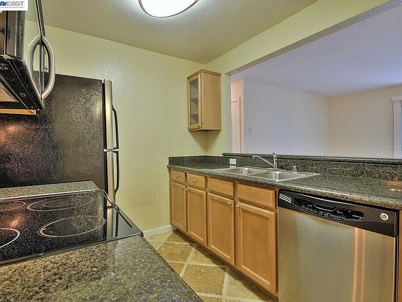 Bright ground floor unit in desirable Baywood Villas. Granite counters & tile floors in kitchen/bathroom. Stainless steel appliances, wall-to-wall flooring, walk-in mirrored closet in bedrm. Fenced in patio. Near shopping, recreation & entertainment, 880/Dumbarton and Silicon Valley. Excellent school district. Oliveira Elementary 1.4mi Thornton Junior High 1.5mi American High 1.4mi 2.3 mi to Fremont BART 1.1 mi to Fremont Amtrak station 2.1 mi to 880 0.9 mi to 84 1 year lease 1st and last month rent Laundry in bldg Carport Pool Spa Playground water, sewer, garbage included
