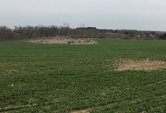 63+ acres in Blackhawk School District, large open field and wooded valley area. Driveway opens to expansive field outlined by trees, sitting above the road with a view. Large metal pole barn on property allows for storage while hunting, farming or building your dream home. 1846 Brick home still stands on the property--please do not enter-not safe. OGM do not transfer.