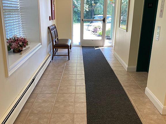 Hidden gem in downtown Hampton! 55+ community. Move right into this "like new" condo in desirable Hampton Village Center, ideally set so far back from the road that no one knows it's there! Walk to anything in town, or a quick and direct drive to the beach! Quiet, well-managed, and with a heated garage. Central Air, large Kitchen, separate Utility Room with washer and dryer that remain, plus wall TV in Living Room that will remain, if desired. This a third floor unit with elevator to ground or garage, plus a gathering room down the hall for meetings or gaming. Unit is vacant, in prime condition, and recently professionally cleaned. Move right in to this lovely, peaceful condo and enjoy the private and convenient location.