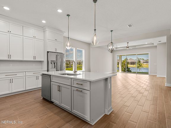 Beautiful 1-story pond front home in the highly desired gated community of Madeira, built by award winner MasterCraft Builder Group. The ''Durbin'' floor plan features 3 bedrooms, 2 baths, flex room and a 2 car garage. Lots of luxury features come included in this home -- 10' ceilings, 6' windows, wood-look tile floors in the main walking areas, smooth walls; too many too count! The kitchen is defined with double-stacked frameless perimeter cabinets with a neutral tone island, soft-close doors and drawers, a large single bowl sink, quartz counters, and high end Electrolux appliances -- built in microwave and oven, 36'' 5-burner gas cooktop, stainless steel drum dishwasher, and counter-depth french door fridge. The well-appointed laundry room has a laundry tub, cabinetry, and Electrolux washer and dryer. Enjoy the Florida lifestyle by opening up your 12 foot sliders to your covered lanai and soak on the view of nature from your pond front yard.