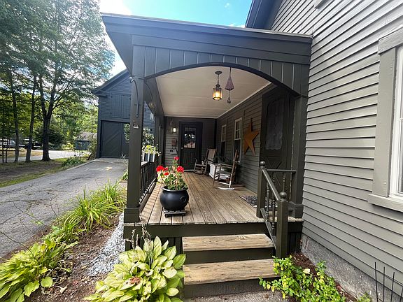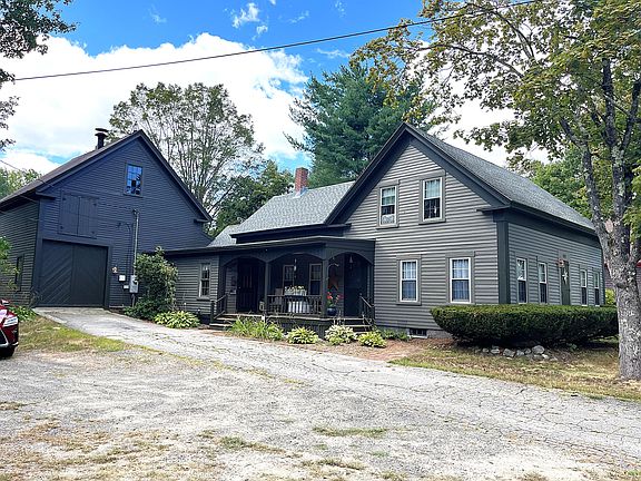 The Southern Maine Lakes Region at its best! Shop and dine locally and hit the lakes for some rest and relaxation.This beautifully updated 4-bedroom, 2-bath farmhouse blends timeless character with modern convenience. Step inside to find an open and inviting floor plan featuring a warm farmhouse-style kitchen, refinished wood floors, and a stunning hearth in the living room that anchors the space.Enjoy not one, but two separate dining areas—perfect for entertaining or family gatherings. The large formal dining room offers a built-in hutch with wine rack, a closet and has a separate sitting area. A bright solarium and double glass doors lead out to a huge rear deck and spacious backyard, ideal for relaxing or hosting. The home also features a side private patio off the kitchen, a covered porch, and a mudroom entry—all adding to its charm and functionality. Updates include vinyl windows, blown-in insulation, electrical service, decking, new flooring, roofs, appliances, light fixtures, and more. There is a 3-season pantry off the kitchen that leads to the attached 2 story barn! This antique gem offers the best of both worlds; classic farmhouse charm with modern upgrades for today's lifestyles. Don't miss this opportunity! Broker Interest.
