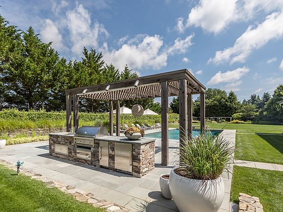 Welcome to your spectacular summer resort at 373 Mitchells Lane! Enjoy the season in this magnificent, expansive traditional-style shingled home privately situated on 1.4 lush acres, down a long flag lot in the heart of Bridgehampton's horse country. Completing the allure is a sparkling heated gunite pool with patio surround enveloped by beautiful greenery, along with peaceful outdoor living areas, lovely bluestone patios, a built-in outdoor kitchen for entertaining, and sprawling green lawn for rolling views and recreation. You'll have plenty of room for family and friends with a generous 6 bedrooms and 7.5 baths, with a 3-car garage. Interiors are spectacular with the finest appointments and attention to detail. Wood floors, exposed brick, wood ceiling beams, tasteful built-ins, cozy fireplaces, chic lighting and more enhance the ambience. The main level offers something for everyone with a large light-bathed great room, entertainment/bar room, and quiet lounge room for winding down. The host will also adore the fabulous top-of-the-line chef's kitchen brightened by floor-to-ceiling windows overlooking the breathtaking pool area, and incredible formal dining room with brick flooring, a stone fireplace, and wall of French doors that bring nature in and lead to an outdoor patio oasis. Begin your day and unwind in the evening in the divine primary bedroom retreat featuring floor-to-ceiling windows, a hidden drop-down TV, automatic blackout shades, and sitting/reading spaces. Refresh and renew in the deluxe en-suite spa bath with a dual sink marble vanity, soothing freestanding tub and oversized steam shower. Additional bedrooms are spacious, sunny and inviting, all with upscale en-suite bathrooms and abundant closets. One of the sun-drenched suites accesses an upper level deck for sunbathing in serenity. There's also a handsome office on the second story for working remotely. Living pleasure continues on the sleek finished lower level offering a graciously-proportioned recreation room with media and play areas, a big fully-equipped CYBEX gym with peloton sauna and bath, an amazing wine room with tasting area, and yet another en-suite bedroom. Paradise awaits!Available Short-Term (Two Weeks July 16th 2025 - July 31st 2025): $150,000