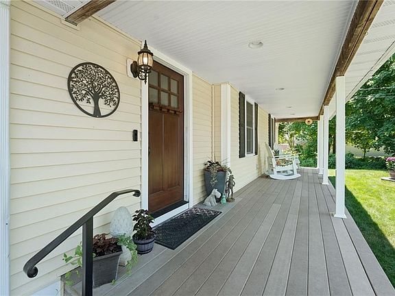 Welcome to your Hope haven. Directly across from the Hope Library, sits this meticulous turn-key 4 bed 2 bath home with over 2,300 plentiful above grade square feet. Thoughtfully constructed and custom designed, there are lifestyle upgrades abound. The entryway greets a strikingly gorgeous cherry kitchen with a large island ideal for entertaining, adorned with granite countertops and stainless steel appliances. Wide plank oak hardwoods run throughout the primary level. Enjoy your precious moments in a warm and inviting living room with a pellet stove for added comfort. For convenience, there's a full bathroom and laundry on the main level. The second level boasts 4 bedrooms and a full bath with Jacuzzi tub and shower. Space is plentiful on the second level with a sprawling additional living room/flex space with cathedral ceilings, skylights and a cozy propane fireplace. Enjoy a low-maintenance vinyl sided exterior with a lovely trex-decked front porch. A 2-car heated garage with automatic door openers await you. The side yard is grassy and ready for your summer activities - along with your stone paver patio in the back. Reduced cost energy bills await - as the fully paid-off solar panels convey with sale. Additionally, your propane fueled generator is ready for your needs as a secondary power source during the stormy seasons. Easy commute to Route 6, schools, Hope Library and Hope Pond Recreation Area.
