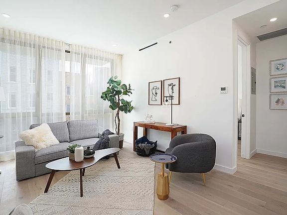 This is a luxury 1br apartment in a boutique condo building with a fully furnished rooftop terrace. The immediate area is bustling with a cornucopia of diverse restaurants and grocery stores. The L and M trains are half a block away, getting you to Union Square or the Lower East Side in 20 minutes. Ten minutes on the L and you're in the heart of Williamsburg. The kitchen has exterior ventilation, a custom-designed marble waterfall counter with a deep sink, and a built-in breakfast bar. The refrigerator, dishwasher, and oven are all high-end fully integrated appliances from Blomberg. There are floor to ceiling windows throughout the apartment. The in-unit washer and dryer are LG. The bedroom easily fits a King size bed set. The central air conditioning is whisper quiet. In addition to the abundant closet space, this apartment comes with a private storage room. Showing by appointment only.