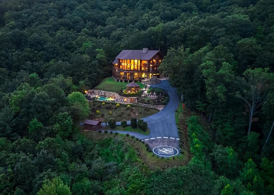Perched in complete seclusion at the end of a private road, this stunning British Columbian Cedar Log estate offers the ultimate escape—whether for corporate retreats, high-level meetings, or refined relaxation. With expansive views from every room and a dramatic wall of glass that brings the outdoors in, this 4-bedroom, 4.5-bathroom masterpiece blends natural grandeur with luxury living. Fabulously furnished with high-end pieces and custom design throughout, this home is a work of art. Intricate hand-carved details elevate every space, while a massive floor-to-ceiling stone fireplace anchors the living room with warmth and elegance. Additional fireplaces in the dining room and bathrooms create cozy, sophisticated ambiance throughout. The custom gourmet kitchen is made for entertaining, with two refrigerators, two dishwashers, two drawer warmers, a double oven and wine cooler. Ideal for both business and pleasure, the estate features an executive office with exquisite built-ins and sweeping views—perfect for focused work or hosting clients. Downstairs, the basement impresses with a state-of-the-art theater room, a rec room complete with a home gym, a full second kitchen, wet bar, and elevator shaft for convenience and accessibility. The custom in ground hot tub with waterfall feature and swimming pool overlooking unobstructed mountain views, add to the magnificence of this mountain top manor. The estate also includes a private helipad for effortless arrivals and departures in complete style, and a meticulously designed 2-car garage that perfectly complements the home's upscale character. There is also beautifully appointed Caretaker Cottage on site, offering privacy, functionality, and timeless charm. Thoughtfully designed for comfort and efficiency, with a full bath and kitchenette, the residence is ideal for on-site staff, guests, or extended family. Privacy, prestige, and panoramic beauty—all just a flight away. ***NO DRIVE-BYS!***