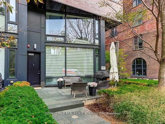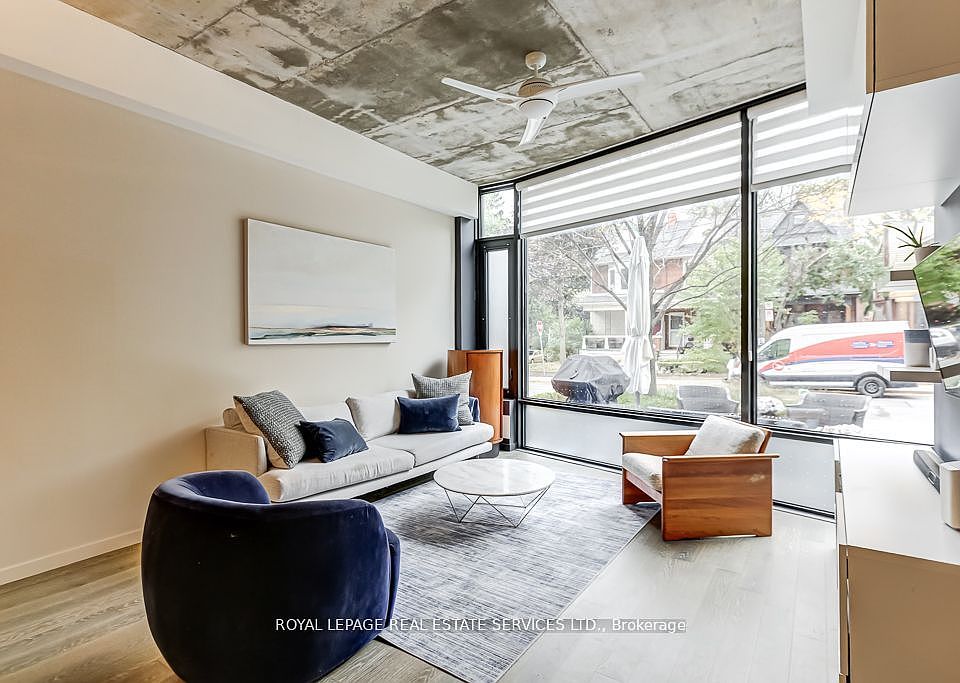 Experience elevated urban living in this architecturally acclaimed residence at 383 Sorauren, an award-winning boutique building blending industrial design with modern comfort. Offering the best of loft-inspired living in Roncesvalles. Soaring concrete ceilings and expansive windows create an airy, open-concept space perfect for entertaining. Rarely offered unit over looking it's own private large terrace, great for summer bbq's, a rare opportunity from one of Toronto's most desirable neighbourhoods. Townhouse features large kitchen with custom over-sized island and integrated appliances including gas range. Spacious living and dinings areas allow for hosting inside or out. Second floor allows for an additional play or workspace and laundry. Located within the catchment area of some of the top ranked schools, including Howard Junior Public School, Fern Avenue Junior and Senior Public School. Vincent de Paul Catholic school. Just steps to Sorauren Park, High Park, and the shops, cafes, and restaurants that define life in Roncy. Quick access to the UP Express, Bloor subway, and multiple streetcar routes. This is a great opportunity to enjoy a special home in one of Toronto's most desired neighbourhoods. Note: The home has 2 addresses. 373 Sorauren Ave is also 383 Sorauren Ave unit 104. Residents of 383 Sorauren Ave condominium enjoy the access to the Building Concierge, Fitness Centre, Co-working Space, and and elegant Party Room. Don't miss this great Townhouse.