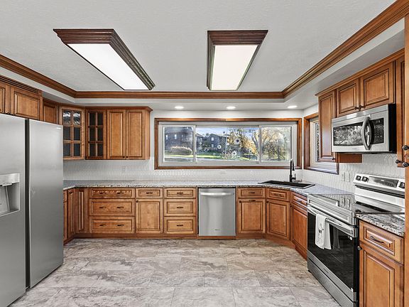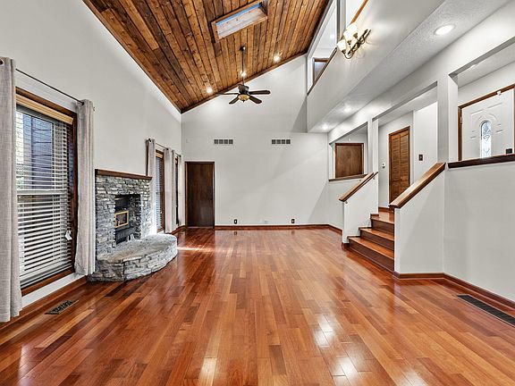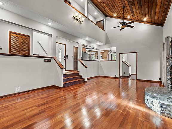 Stone fireplaceWooden vaulted ceilingLarge great roomSpacious dining areaNewer appliancesRenovated kitchenStunning cabinetry
