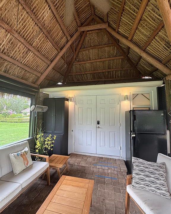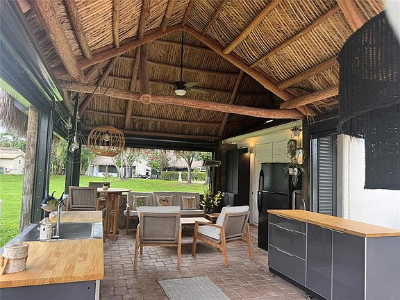 Welcome to your tropical RV oasis! Rare find combining comfort, style, and resort-style living! Enjoy the impressive 30’ x 15’ tiki hut with electric shutters and mosquito screens, installed 2023, ideal for relaxing or entertaining. Custom shed includes: Murphy bed, full bathroom w shower. Extra storage for ultimate convenience. Lot comes fully furnished with a living room set, bistro table,high-end American teak dining table with 6 chairs (invoice available). Golf cart with brand-new batteries is also included! Room to expand with options to add a rear extension or balcony for even more outdoor living space. Nestled amid lush tropical landscaping in a friendly community, this property is turnkey and ready for your RV lifestyle, whether as a seasonal escape or your full-time paradise!