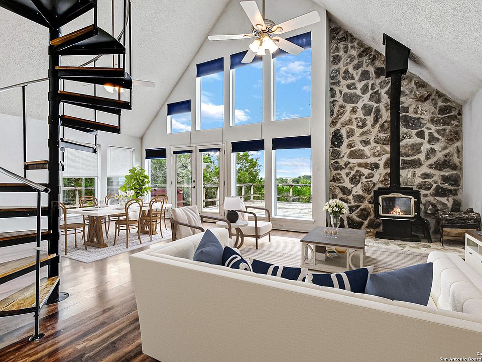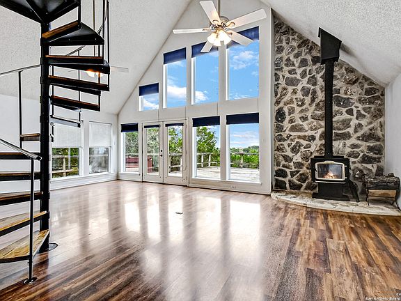 Welcome to this charming property, with panoramic views in a desirable gated Hill Country community. Nestled on an expansive 6-acre lot in the serene Treasure Hills neighborhood just south of Kerrville, TX. First time on the market, this unique property offers long-range panoramic views that capture the heart of Texas Hill Country. Recent upgrades include a recently refurbished, large deck, leveled foundation with a 5-year warranty (2024), a refurbished metal roof (2024), Newer HVAC (2022), and a brand-new well pump and motor (2024). The home needs some cosmetic updates, but the overall elements of the home are good! The home features 1,780 square feet of living space, thoughtfully designed with 3 bedrooms, featuring an extra large main level primary bedroom, an extra large secondary bedroom plus loft, and 3rd bedroom (on main level) being best suited for home office, guest or work out room. Enjoy the natural light that streams through floor-to-ceiling windows in the living area that also boasts vaulted ceilings, enhancing the open feel of the home. Harmon steel wood burning stove heats the ENTIRE home in the coldest months. Step outside onto the large NEW deck and enjoy the peaceful outdoors, and long-range views. The home also includes a fully fenced area for pets! The property has a detached carport/garage with ample enclosed storage/workshop areas. Residents of Treasure Hills enjoy exclusive access to a private, stocked fishing pond, a private shooting range, and the security of gated entry. This home is ready for a buyer to make it their own private oasis! Motivated sellers! Ask about owner finance option with reduced interest rate.