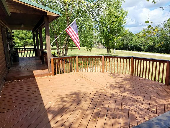 Live in the country on a paved road & be 30 minutes from either Branson or Harrison. County Living at it's BEST in this 4BR, 2BA log cabin home with 2,876 Sq. Ft. of living area, vaulted ceiling in upstairs living room & kitchen/dining area, double elec. ovens, Satellite Dish Network, Cable TV available, electric logs in fireplace, Heat Pump, Propane Central/Forced Air, Propane Space Heater & Wall Units for backup, double garage, Utility garage, large covered wood deck, fiber optic cable for ''SUPER'' fast internet service. PLUS a 660+ Sq. Ft. detached guest home with open floor plan (studio) 1 bedroom, 1 bath with separate utilities - shares well with main house. Central Heat in attic & window AC unit for cooling. On top of that an amazing view from the back deck.