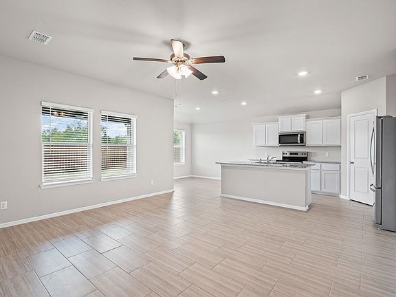 Welcome to this 2025 built home. Offering a modern open concept layout with three bedrooms and two bathrooms. The open kitchen, complete with a kitchen island, seamlessly flows into the breakfast nook and family room, making it perfect for entertaining. The main living spaces are adorned with tile flooring, while the bedrooms are carpeted for added comfort. Split bedrooms! The primary bedroom is generously sized and features an en-suite with an oversized walk-in shower and closet. The secondary bedrooms are also well-appointed with ample closet space. The guest bathroom is spacious and includes a tub/shower combo and extra storage. The home also boasts a two-car garage, a fenced yard, and covered front and back porches for outdoor enjoyment. As an added convenience, the fridge, washer, and dryer are included. The home is within walking distance to Lowell Middle School and Cleburne High School, making it an ideal location for those seeking proximity to local schools. Experience the comfort and convenience of this beautiful home.