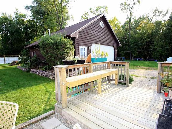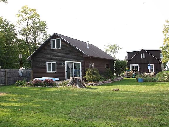 Enjoy Bay views and awesome sunsets! This cozy home features an open concept with hardwood floors, beamed ceiling and a touch of knotty pine giving it a warm cabin feel. The upper level includes a loft bedroom with views of the Bay from your private deck, laundry area, knotty pine ceilings and a second bedroom. The huge 24x36 garage offers tons of space for your seasonal gear along with a walk-up loft for even more options and a bunk room with patio doors to a deck for backyard entertaining. Public water access just down the street makes it a great weekend getaway or year-round home!