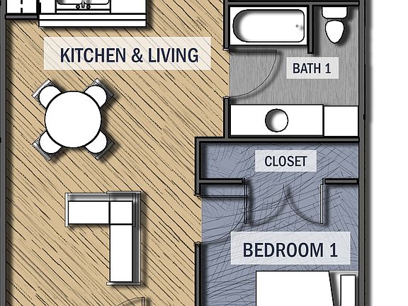 - Bedrooms: 1