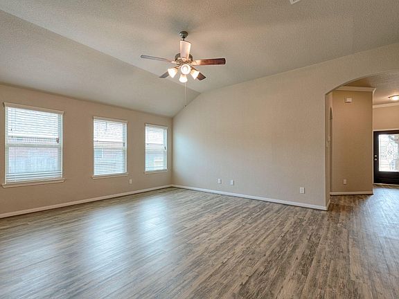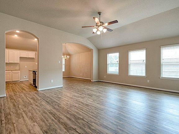 Stunning 4 bedroom 1 story home w/vinyl wood plank flooring throughout and carpet in bedrooms only! Fabulous kitchen with oversized serving bar, granite counters w/under mount sink, designer backsplash and breakfast area big enough for a table for 8! Open floor plan with an oversized family room with lots of windows! Owners retreat with high ceilings and ensuite bath w/double sinks vanities, garden tub and separate shower w/big walk-in closet. Home features Home includes pre-wire for alarm system, surround sound prewire and HD camera prewire, 2" Faux wood blinds, 6 foot privacy fence backyard and so much more included! Very Low Tax Rate! Call today for a tour!