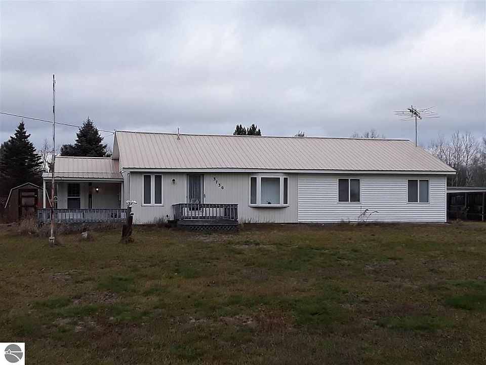3 bedroom, 1 bath ranch home on a corner parcel with 2.38 acres. The home features central air, spacious living room, mud room, laundry room, metal roof, 12x17 deck and a large open yard! Located along a paved road nearby M-65 and M-76.