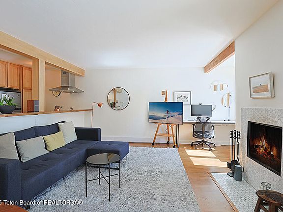 Thoughtfully designed, the cozy yet spacious layout features warm wood accents, a well-appointed kitchen, and a private patio to take in the tranquil mountain surroundings. Just minutes from Jackson Hole Mountain Resort, local dining, and outdoor adventures, this home is an excellent base for year-round recreation.