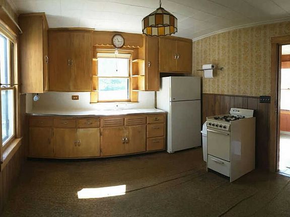 Great opportunity! With a little bit of work, this house could be restored to its original beautiful state. Hardwood floors & original woodwork can be found throughout this country home that sits on 1.76 acres with AG zoning. Living room with beautiful oak staircase with intricate details. Spacious kitchen with solid wood cabinets, hardwoods under the carpet and attached mudroom. Formal dining room & large front porch for relaxing. Upstairs there is 2 bedrooms & 1 full bath that has been remodeled. Outside you will find lots of mature shade trees and a detached 2 car garage with an attached workshop. Furnace 2011, water heater 2013 & newer roof. No FHA or VA Sold "AS IS"