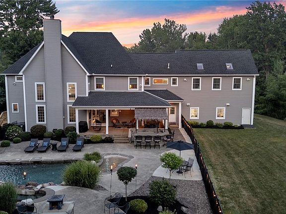 3730 Transit Road Simply Has It All. Private Custom-Built Orchard Park 4+ Bedroom and 3 Full and 2 Half Bath Estate Nestled on 2.68 Acre Wooded Lot with Mature Trees and Landscaping. Easy Entertaining in the Spacious, Open Floor Plan Featuring Great Room with Dramatic Floor to Ceiling Stacked Stone Wood Burning Fireplace, Inviting Dining Room with Brazilian Cherry Hardwood, Entertainment Room with Custom Bar and Luxury Vinyl Flooring and Expansive Second Level Multi-Purpose Space Addition with Cathedral Ceiling for Endless Possible Uses. Fully Renovated Gourmet Kitchen Highlights Solid Wood Cabinetry, Quartzite Counters, 9x5 Foot Island, Tile Floor, Stainless Appliances and Walk-In Pantry. Primary Bedroom Retreat with Walk-In Closet and Spa-Like Full Bath with Double Sink Vanity, Heated Tile Floor and Walk-In Shower. Three Additional Generous Bedrooms with Large Closets and Two More Updated Full Bathrooms Complete the Second Level. Backyard Oasis Boasts Heated Gunite In-Ground Pool with Updated Mechanics, Waterfall and Spa, Outdoor Fireplace, Concrete Wet Bar and Exposed Aggregate Concrete Wrap Around Covered Porch. Mechanically Sound with Substantial Capital Improvements Including Architectural Roof, Pella Windows, Central Air and Generac Gas Generator. Additional Features Include First Floor Laundry Area, Large Mudroom with Built-In Storage, Partially Finished Basement and Home Office Space. Experience Privacy, Luxury and Convenience Located Minutes Away from the Villages of Orchard Park and East Aurora and Numerous Amenities. The Attention to Detail Throughout This Special Property Is Second To None. Welcome Home.