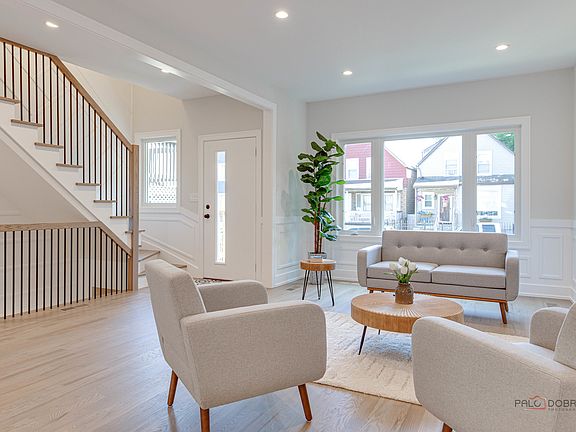Welcome to this adorable home nestled on a quiet dead-end street just steps from the western end of the highly sought-after 606 Trail. Completely remodeled with high-quality finishes by an experienced builder. This 3 bed, 2.5 bath modern farmhouse style home showcases luxurious finishes and an open-concept layout. The first floor exudes warmth and sophistication, featuring an electric fireplace, and an abundance of windows that flood the space with natural light. Modern layout includes a beautiful Living-Dining Room and first-floor office combo, Gourmet chef's kitchen adorned with an expansive quartz island, high-end stainless steel appliances. This level is complete with a powder room and a thoughtfully designed mudroom. Primary bedroom on the second floor. Fully finished basement boasts a family/recreation room, full bathroom, and laundry. Outside offers exceptional entertaining and play space with a large concrete patio overlooking the sweeping 25-foot backyard and the two-car garage. Located within proximity to the Bloomingdale Trail, McCormick YMCA with new swimming pool, public transportation, and all of Humboldt Park's fabulous shops and restaurants. This home embodies the ideal blend of comfort and convenience in urban living.