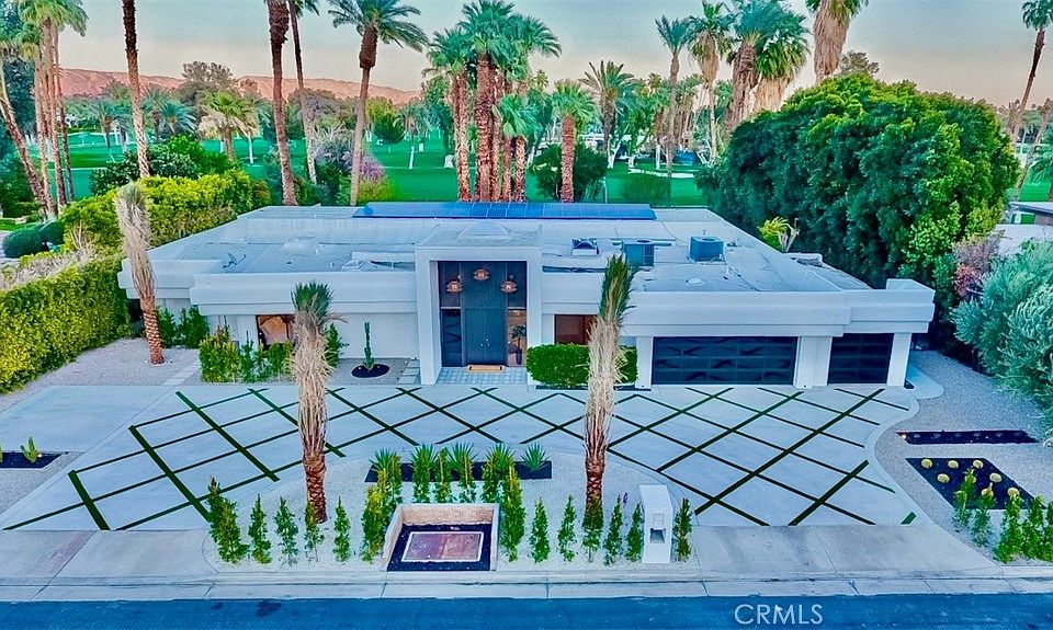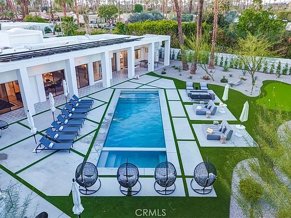 This completely remodeled 5 bedroom, 5.5 bathroom home backs to the 3rd and 5th fairway on the Tamarisk Golf Course within Tamarisk CC and has NO HOA dues! The Master and two guest bedrooms are on one side of home and two additional guest bedrooms on the other side of the home for ideal privacy. High ceilings, natural light and large public spaces great for entertaining. Spacious and luxurious master suite with stunning master bathroom and soaking tub. Well appointed property with lovely views, featuring an impressive colonnades that runs along back of the home, beautiful custom landscaping, new designer pool & spa, fire pit, outdoor kitchen, pool bath, outdoor shower, and newly installed putting green. Resort like yard gently unfolds onto the famed Tamarisk Golf Course. Owned Solar! Furnishings are available for an additional cost.