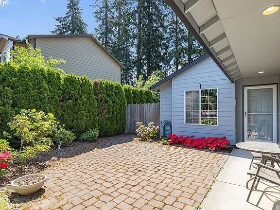 Spectacular home, private setting! Enter into a sweet courtyard with beautiful landscaping. Home has soaring vaulted ceilings, lot's of windows to let in all the light, a gas fireplace and hardwood floors throughout. Kitchen includes refrigerator, eat bar, dining room with slider to stunning backyard with more beautiful landscaping & a view of the field behind you. 3 good size bedrooms, main bedroom has its own bathroom. Sale includes all appliances.