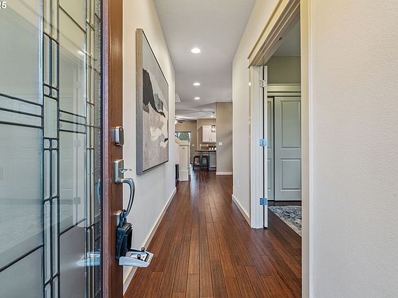 Enjoy breathtaking views of Portland, Mt. Adams, and the Columbia River from this five bedroom beauty perched above Washougal. The quarter acre lot sits on a charming cul de sac in the Riverview Estates neighborhood with wide streets and spacious sidewalks. Inside, enjoy more than 3,000 square feet of living space that still manages to feel cozy and warm. The formal dining room flows seamlessly into the impressive great room with large corner fireplace. Open eat-in kitchen with oversized island, quartz counters, modern appliances, fresh white cabinets, and pantry. All new wood flooring. One bedroom and a perfect home office on the main, with four more bedrooms upstairs! The primary suite lives like a luxurious hotel room featuring a huge private bathroom complete with soaking tub, separate shower, double sinks with quartz counters & extra vanity space, and walk-in closet. Watch the sun rise from the upstairs balcony. Upper level also includes a HUGE loft family room! The flat (newly) fenced yard is a private haven with lush grass, mature landscaping, irrigation & drip system, and stick built shed. Grill on the patio year-round thanks to the beautiful cedar cover with skylights & Speakers. Toys encouraged with a side yard large enough for a trailer, RV, or boat, also includes 50 amp power & water/sewer hook-ups. Plus, 3-car garage! Roof in 2024. All this near breweries, restaurants, scenic nature paths, with easy access to the Gorge, Portland, and Vancouver! New tankless water heater, water softener, and whole house carbon filter. 50 AMP EV charger in the garage.