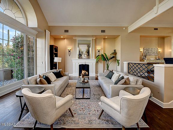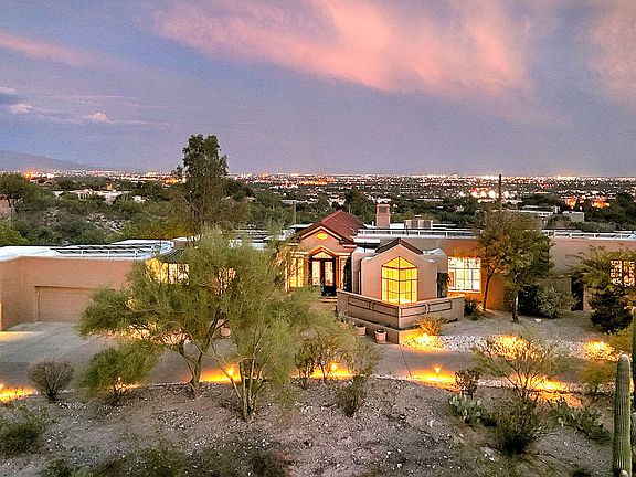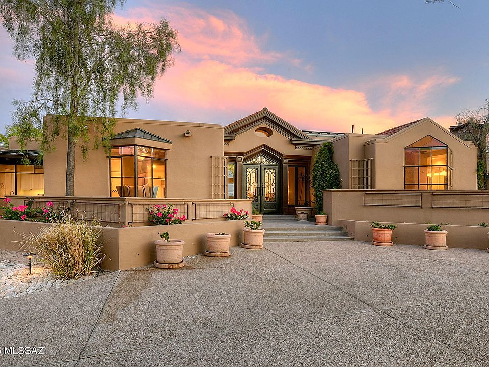 This Stunning soft contemporary sits high on a 1.6 acre ridge top overlooking panoramic city & mountain views in prestigious gated Catalina Foothills Estates #10. Custom wrought iron entry doors invites you into this beautifully remodeled home with 3978 sq.ft in the main house & a 331 sq. ft. guest house. A dramatic living room & dining room with high vaulted ceilings welcomes you with large picture windows to capture the views, elegant fireplace, beautiful wood floors, exquisite new gourmet island kitchen with custom cabinets, stainless steel Jenn-air appliances, double ovens, 36''induction cook top, 2 dishwashers, wine cooler, microwave drawer, refrigerator, prep sink, pantry, lovely breakfast area, spacious family room with built-ins, 4 bedrooms (split plan) & ....... continued....... 4 bathrooms in the main house including primary bedroom with fireplace, sitting area, travertine floors, luxurious bath with dual sinks, separate shower, oversized tub & abundant closet space. The wonderful guest house features a bedroom & bath overlooking the fabulous backyard with covered patio, fenced pool, turf, play area, BBQ, lush vegetation, serene privacy, incredible views, oversized 3 car garage with storage area, Dist.16 schools & views, views, views !!