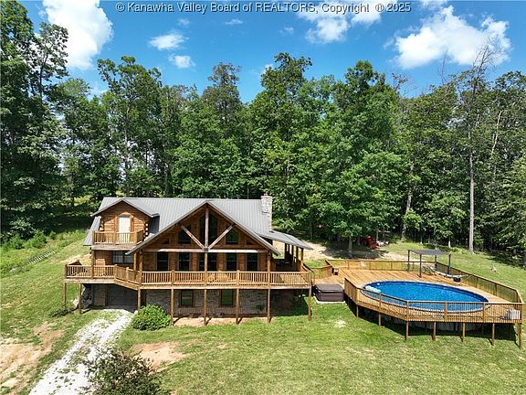 Enjoy your own private retreat with this beautifully maintained one-owner Appalachian Log Home Structure, nestled on 20 peaceful acres ideal for hunting, recreation, or livestock. Rich in rustic charm and modern comfort, the home features hardwood floors throughout, soaring vaulted ceilings, and a stunning stone fireplace at the heart of the spacious great room.