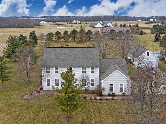 Country Estate close to everything! Two-Story home on 8+ acres and ~4,000 SF on 3 Finished Levels! 3+ car attached garage plus a 24 x 48 (4 car tandem) detached garage and 34 x 84 steel barn. Two-Story Foyer opens to an expansive Great Room with gas fireplace and french doors to a patio. Fully applianced, island Kitchen has wrap around oak cabinets. First Floor Den and Laundry Room. Owners Suite has vaulted ceilings, plant ledge, walk-in closet and vaulted whirlpool Bath with skylight. Huge Bonus Room/4th Bedroom/Theatre. Full, Finished Lower Level has Billiards Area, 2 Recreation Rooms and Den. 4 BRs & 2.5 Baths. Delaware Schools. Only $619,900! Call DeLena today!