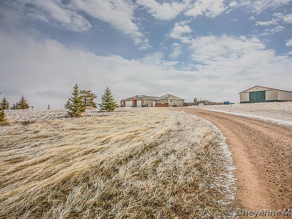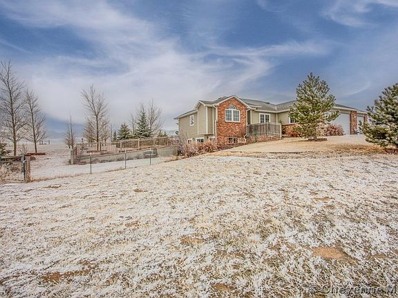 This beautiful brick home and hobby farm on 35 fenced acres is just outside Cheyenne, WY, with no HOA. Featuring over 4,000 sq ft of finished living space, a Mother-in-law suite with its own kitchenette and private patio, a large Morton outbuilding with concrete and 220 electricity, a greenhouse with a Koi pond, mature landscaping, fencing, a newer animal/goat shed, chicken coop, and a three car attached garage. The main house and the separate suite have their own heat, A/C, and water heaters; the large shared laundry room joins the units. This is a unique property with so many uses and much to offer!