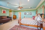 Grand curved staircaseLake observation deckLibrary with custom built-insGenerous closet spaceAccess to the balconyMultiple porchesExposed beams