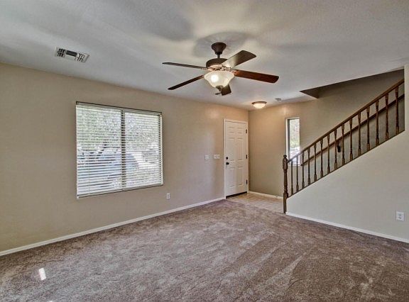 Spacious 4 bedroom/2.5 bath ready for move in! Upgrades include ceiling fans, upgraded lighting and tile in all major walk ways upgraded lighting. Spacious master suite with privacy windows and master bathroom. The backyard is a blank canvas for the pool of your dreams. Covered patio and Community pool. Home is conveniently located close to shopping, schools, parks and plenty more. A must see!