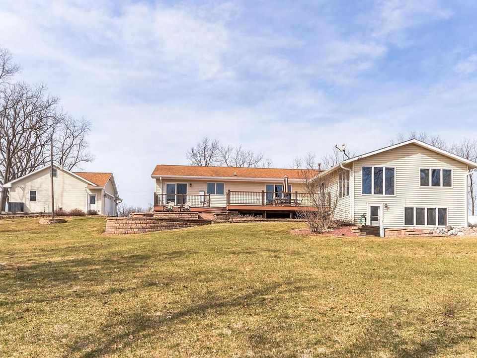 Beautifully updated sprawling ranch in a spectacular location only minutes from town on approx. 2.75 acres. This home features: open floor plan with vaulted ceilings, gas fireplace in the living room, peaceful sunroom, updated kitchen overlooking the nicely landscaped yard, 3 bedrooms, 3.5 baths, lower level family room with bar, attached 2 car garage and detached 3 car garage with extra storage above and so much more.