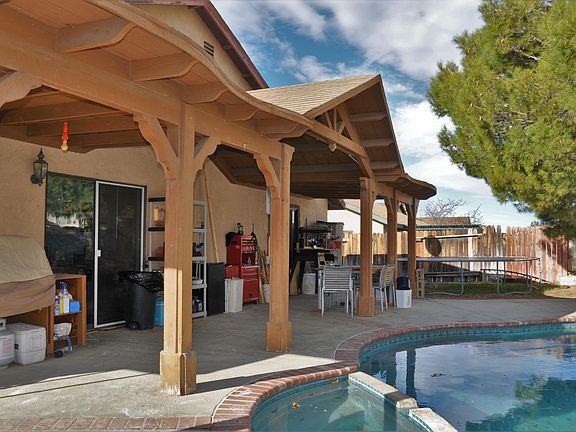 Hurry! This pool home won't last long. Enter through your front fenced yard with shade tree's and grass to an inviting 3 bed 2 full bath home. This open floor plan offers a fireplace for those cold nights. Kitchen opens to the dining room with wood laminate and tile floors throughout. Exit out the patio door to a custom patio for entertaining, a built in viking barbeque and a heated pool and spa.