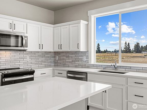 Move in Ready, Fabulous Brand New Tenino Rambler situated on nearly 5 acres surrounded by beautiful pastureland, horses, peace & tranquility plus Mt. Rainier & territorial views. Open concept floor plan, vaulted ceilings, durable LVP flooring & a sleek linear fireplace. Impressive designer Chef’s kitchen w/quartz countertops, stainless appliances, a spacious island, ample cabinetry & walk-in pantry. The light & bright dining area opens to a covered outdoor living space. French doors lead to a luxurious primary suite w/5-piece bath, oversized tile shower, soaking tub & walk-in closet. 3-car fully insulated garage, energy-efficient heat pump w/A/C & high-end finishes throughout—perfect for entertaining, working from home or simply relaxing.